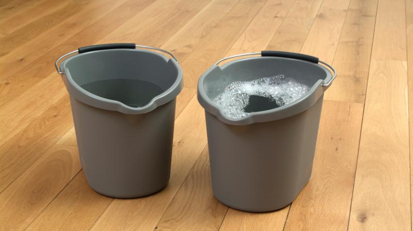 If the floor is very dirty, you can work with two buckets. One bucket for clean soapy water and one bucket to wring out the cloth.