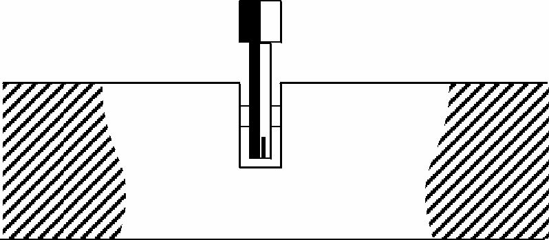 The moisture content is determined in a number of drilled holes or channels cast in the floor. The holes are drilled to a depth of approx. ½ x the thickness of the floor construction and with a diameter which allows the measuring instrument's sensor free passage. Carefully vacuum the hole to remove dirt and dust from the concrete. Place the moisture gauge in the drilled hole with a close fitting barrier seal (airtight), see Fig. 6.