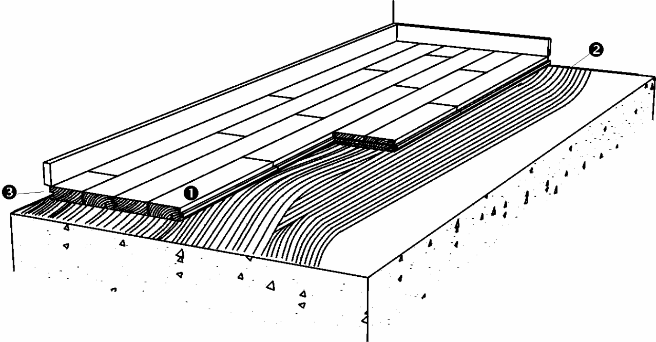 In order to minimize stress or gaps in the floor due to fluctuations in the climatic conditions within the building, floorboards must be laid according to a 10‑board rule.